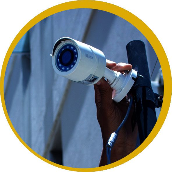 Conhecido como circuito fechado de televisão (CFTV) o monitoramento é a vigilância feita por câmeras que transmitem as imagens em tempo real para um gravador de video ou Central de Monitoramento, no caso de câmeras IP.